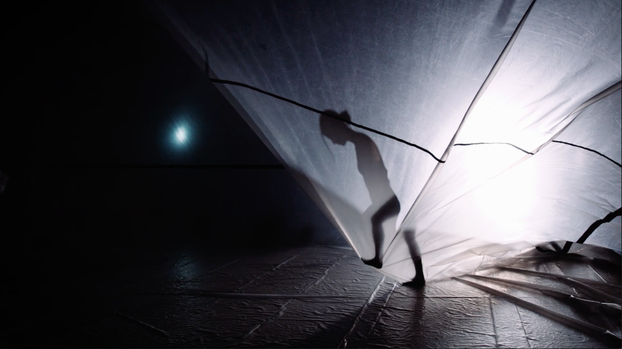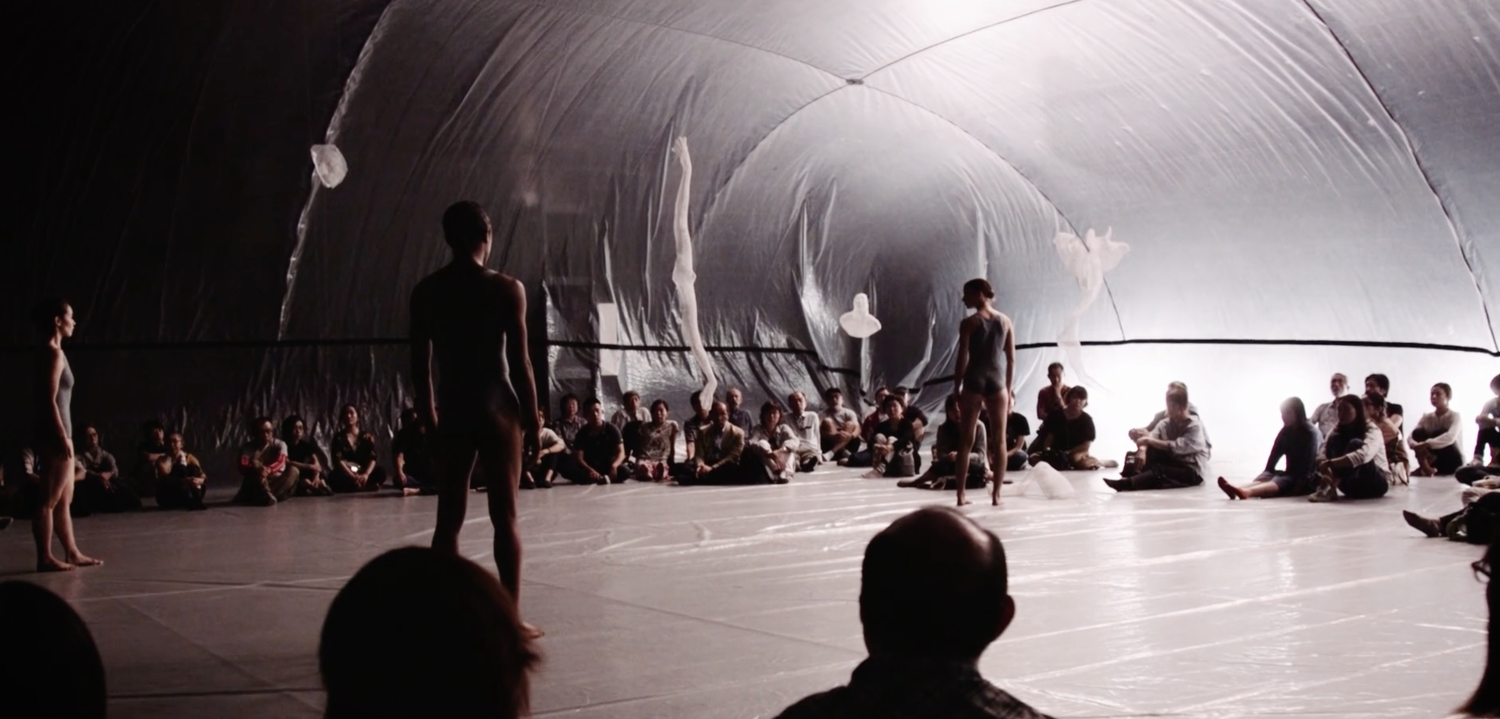 Organisms that person (you and I) are invited to step inside an inflatable set design by Numen / For Use as the black box theatre is transformed into a unique immersive space shared by both audience and performer.